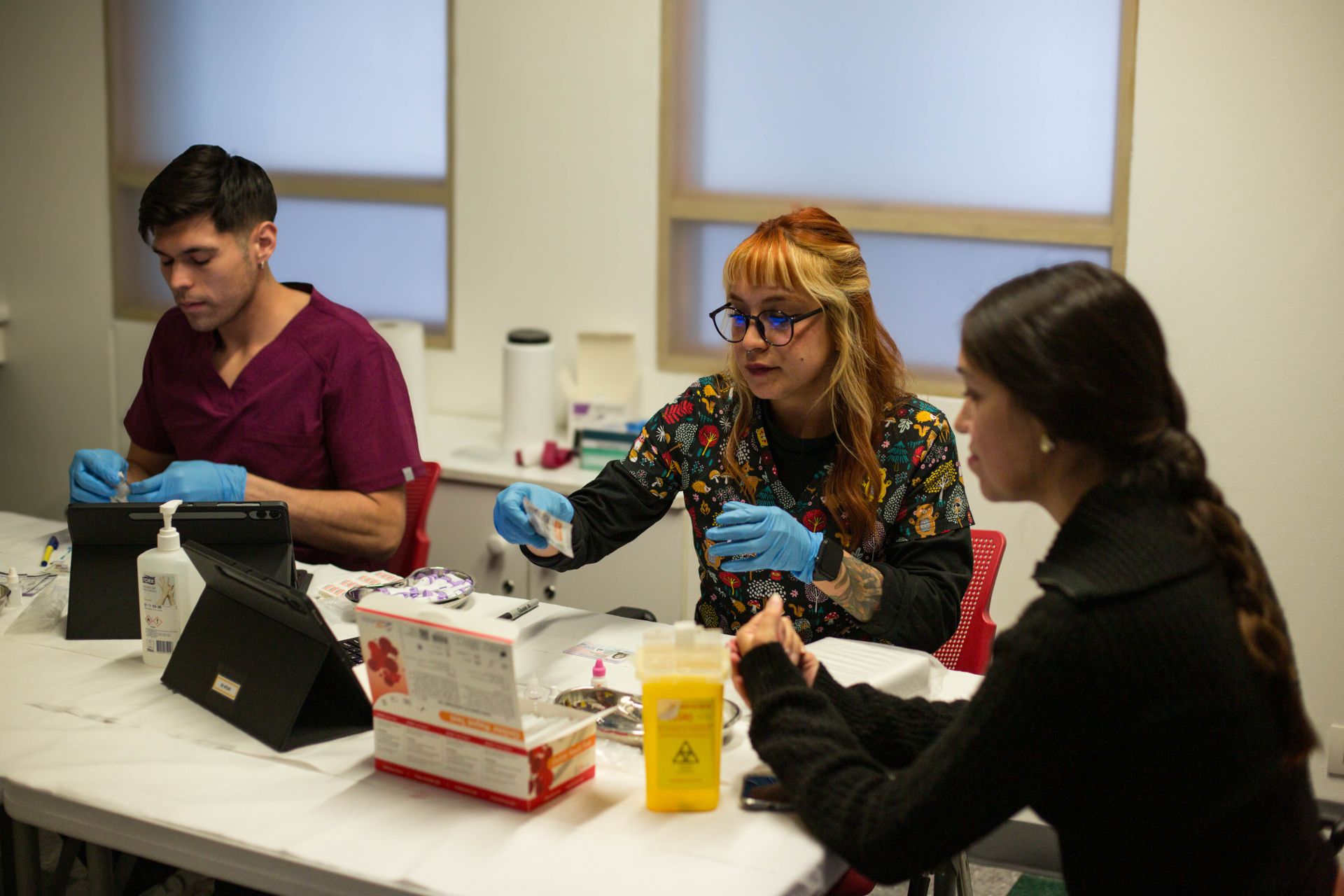 Al día siguiente, durante toda la mañana, se invitó a las y los estudiantes de las universidades del CRUV a la toma de test rápido de VIH e ITS, en el Servicio Médico y Dental de los Alumnos (Semda).