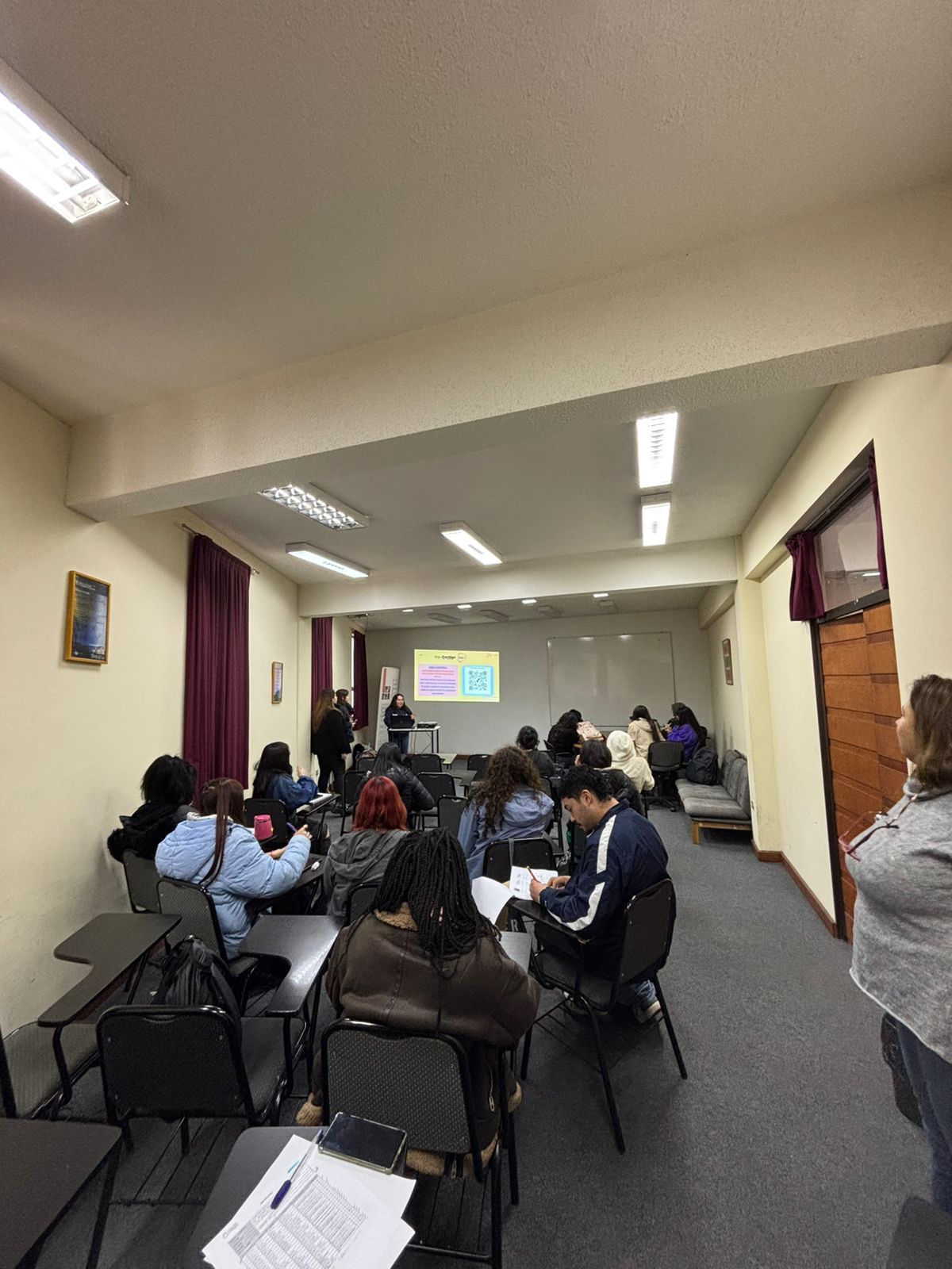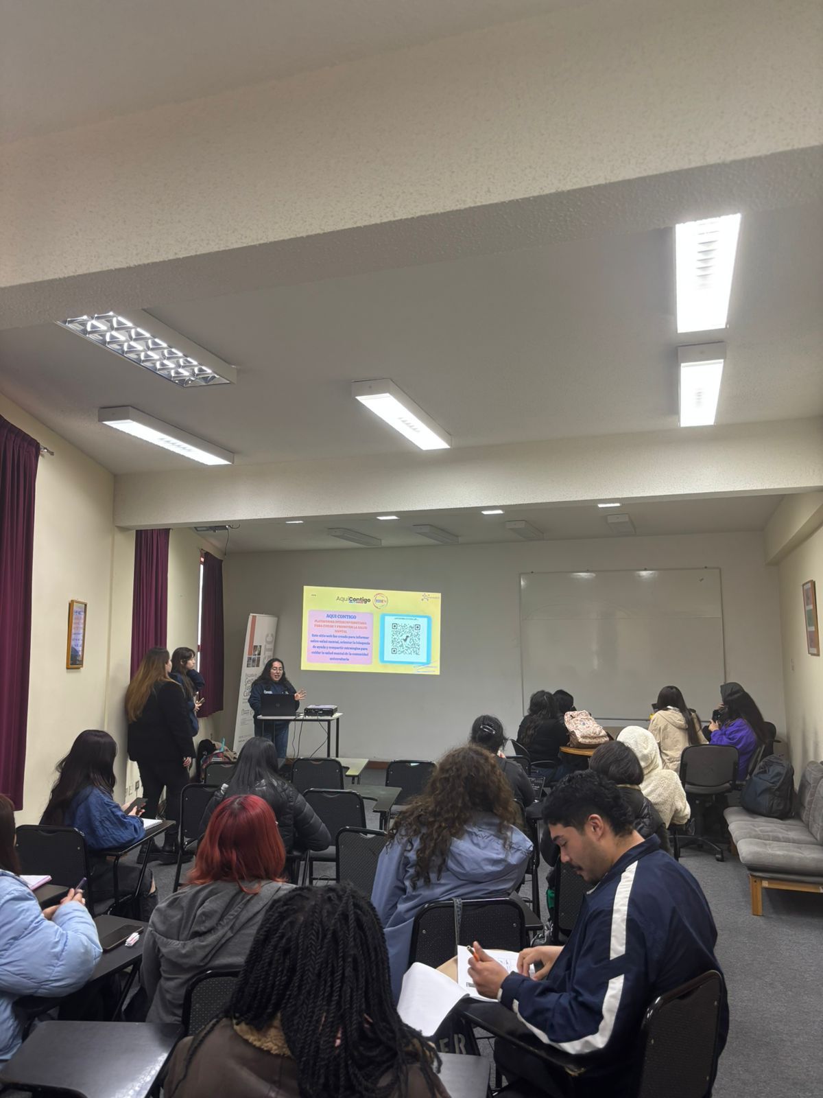 El pasado jueves 22 de agosto, se llevó a cabo una charla acerca de la ansiedad en la vida universitaria, para ello, se expuso acerca del concepto; qué es la ansiedad; características; tipos de ansiedad; trastorno de ansiedad; consejos y, finalmente, se concluyó con una actividad dinámica dirigida a los estudiantes de la carrera de gestión en turismo y cultura. La actividad consistió en hacer grupos entre los presentes para que cada uno de estos a través de cualquier tipo de presentación ya sea, actuado o en dialogo, representara la ansiedad.